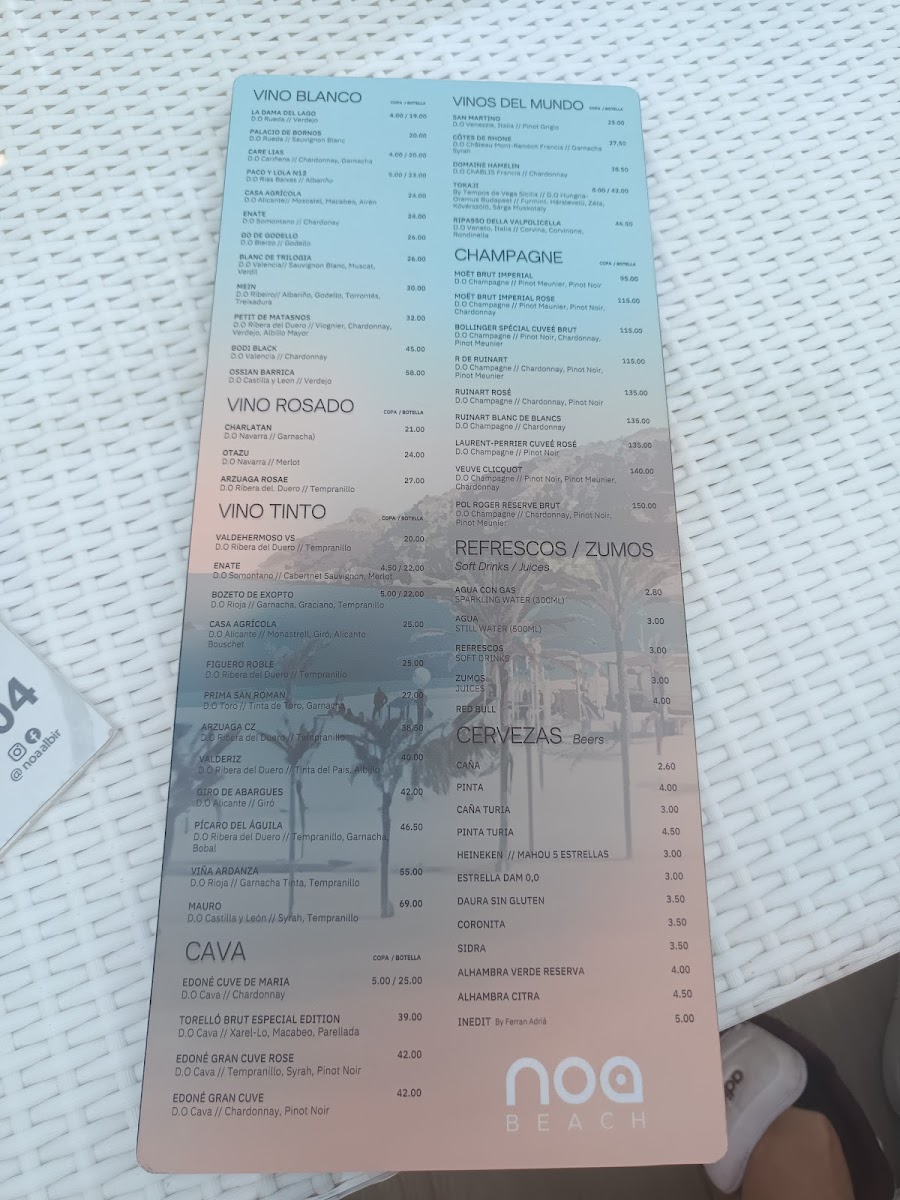 Welcome to Noa Albir, a culinary gem nestled in the heart of l'Alfas del Pi, Alicante. This remarkable restaurant delights the senses with a menu that champions fresh and vibrant flavors. The offering includes an array of beautifully crafted ensaladas, such as the Ensaladilla Rusa, featuring succulent ventresca de atún and a medley of olives at just €10.00. For those seeking warm starters, the Patatas Bravas and Croquetas Noa are a must-try, each priced at €10.00, providing guests with hearty, comforting bites.